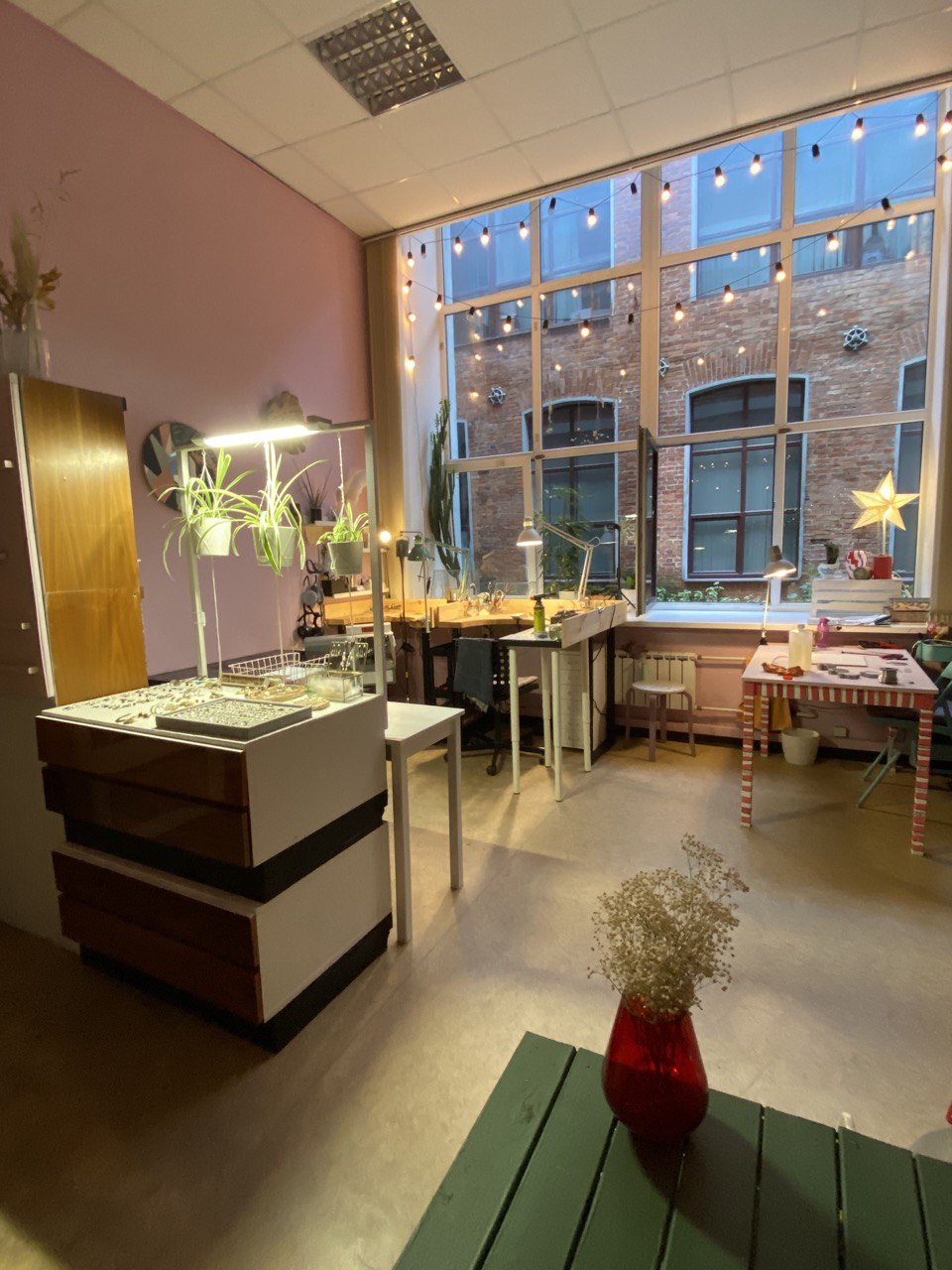 Then the idea of turning the bar into a shop came up since Gleb's bar moved around the corner to a larger room. During that process, we met Veronica, another co-founder of the store. She creates very stylish beaded and pearl jewelry.