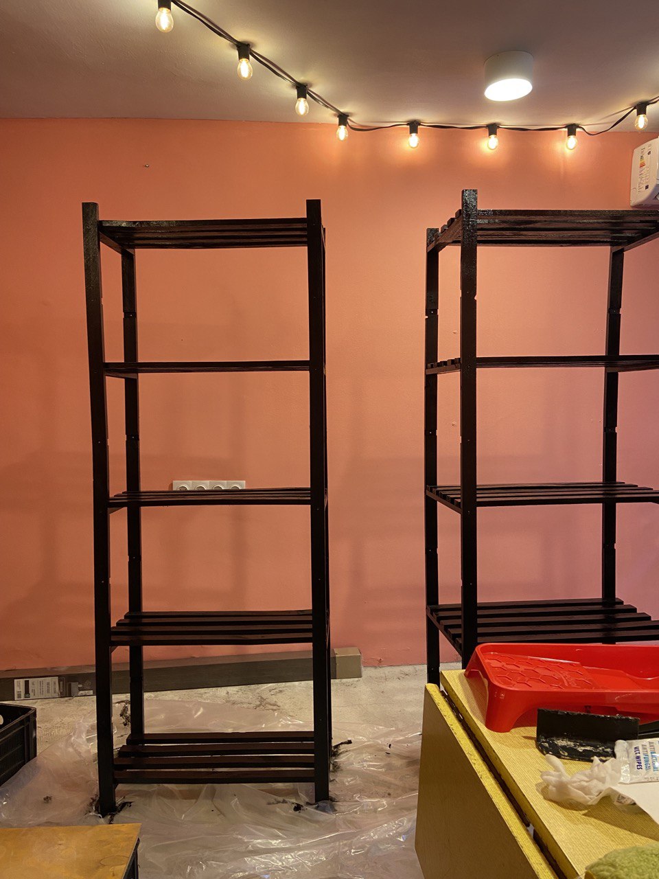 We had a beautiful workshop, here it is in the photo) we did everything ourselves, tables, cabinets, bought tools, we turned into a small factory, it was cool. According to calculations, in a year we had to move into our house, with a cat and large windows.