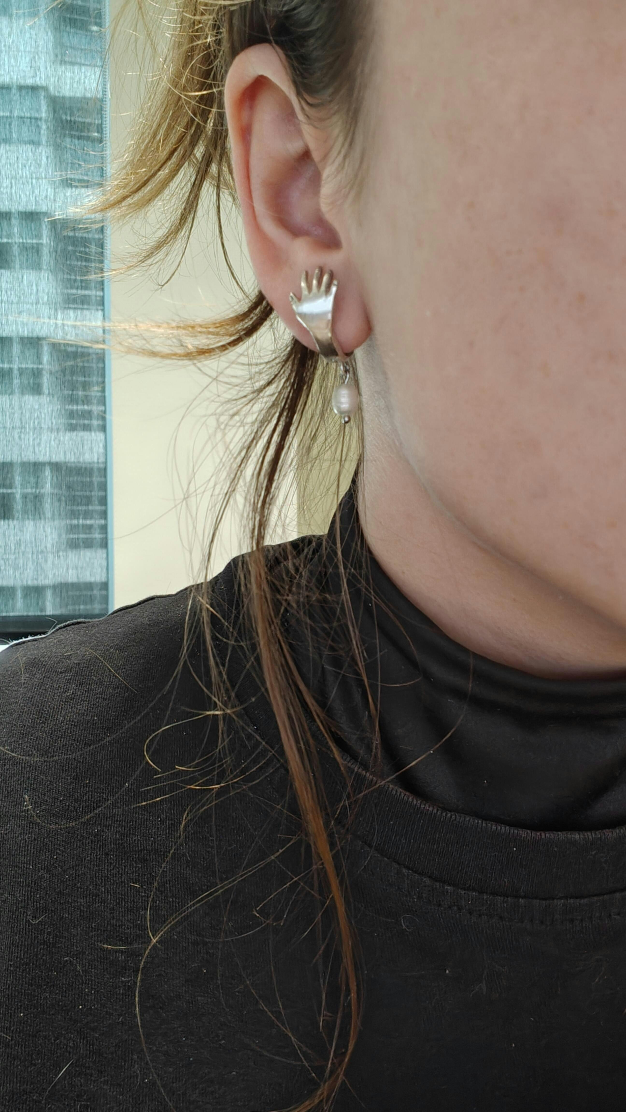 Сережки "Я обіймаю твоє вухо" з перлами